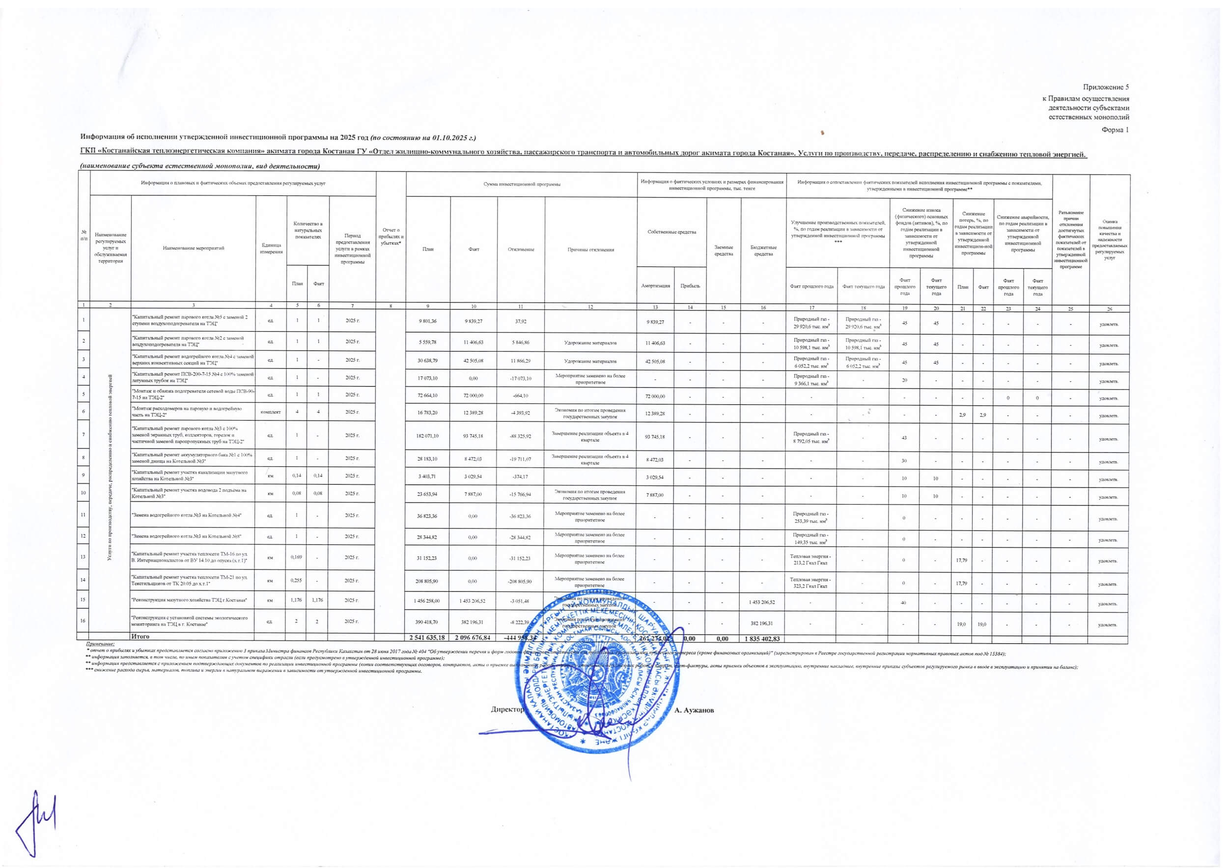 Главная » Инвестиционная программа » Информация об исполнении утвержденной инвестиционной программы на 2025 год (по состоянию на 01.10.2025г.)